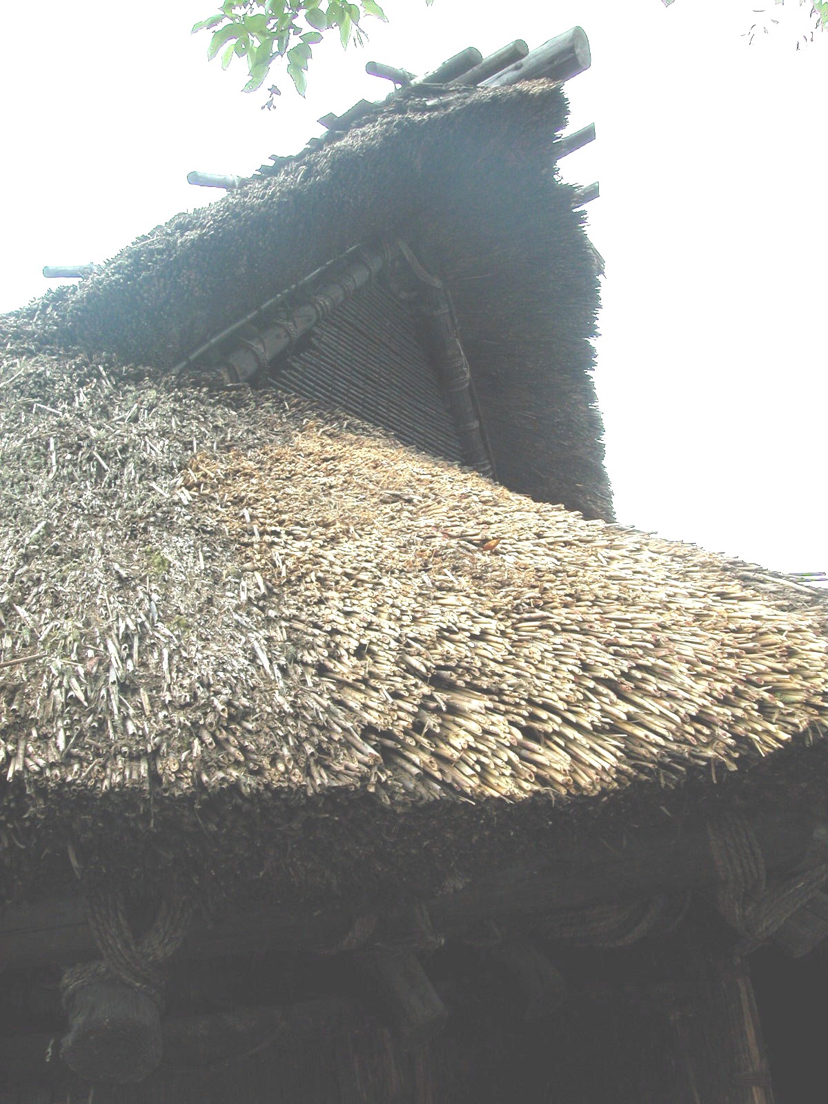 | The outside walls are very sturdy and reinforced with horizontal bracing and rope. | The roofing is millions of reeds tightly packed in two foot thick layers all over the roof. It hangs ofer the walls by about two feet, as well. | ||
